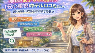 那覇で「夜ごはんに困らない」ホテルを、ホテル口コミの傾向でやさしく比較♪ 国際通り・久茂地・旭橋・美栄橋など外食しやすいエリアの選び方や、飲食店・コンビニの近さ、夜の安心感、騒音チェックのコツも解説。楽天で空室・料金も確認◎